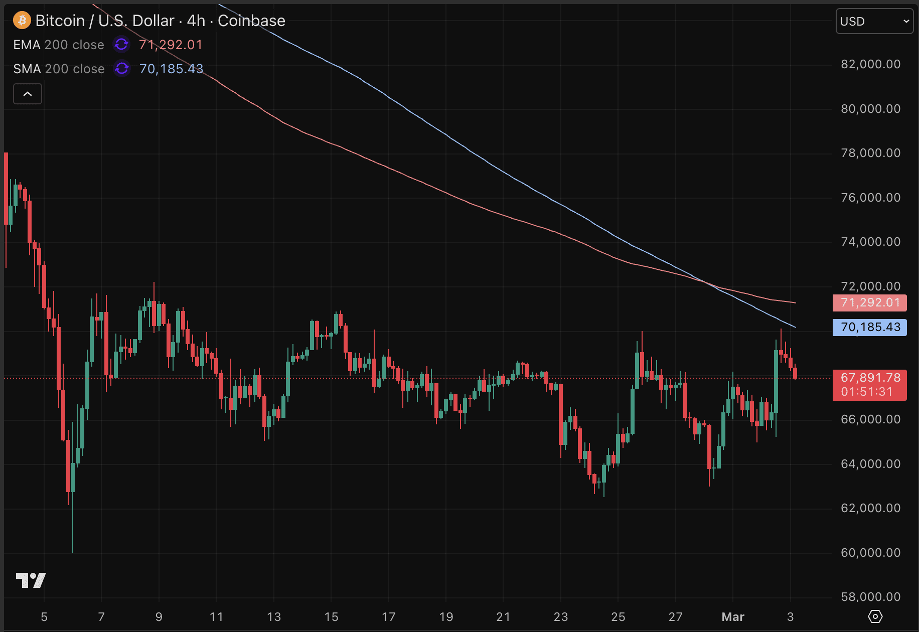 Trump semble ainsi commencer à réaliser sa « révolution industrielle » aux États-Unis. Les marchés ont donc eu une raison de voir Bitcoin sous un angle plus positif, avec le cours atteignant 69 000 dollars.