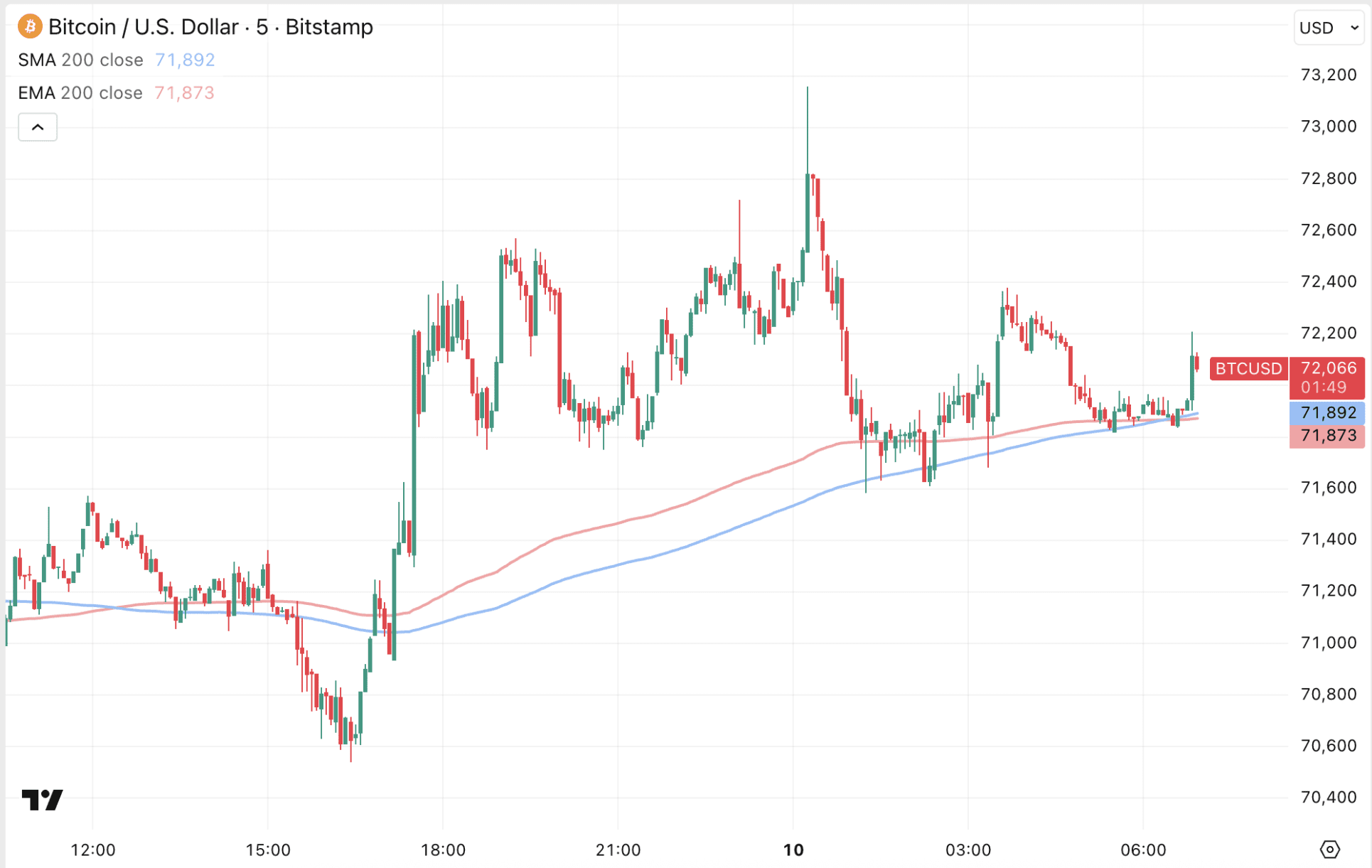 Le Bitcoin (BTC) maintient sa vigueur. Le cours du Bitcoin a de nouveau grimpé la nuit dernière en direction des 73 000 dollars, alors que les chiffres économiques des États-Unis étaient peu rassurants. Normalement, cela devrait être défavorable aux investissements risqués, mais le marché semble interpréter la situation différemment cette fois-ci.