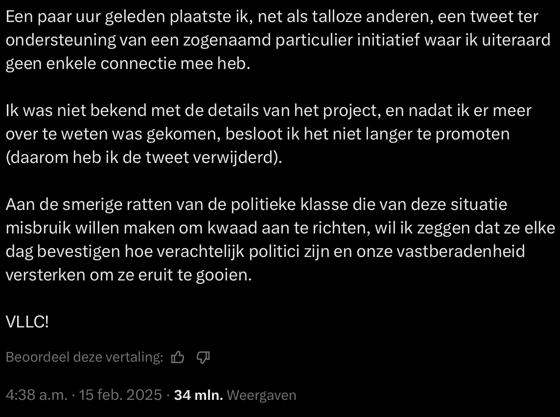 « Il y a quelques heures, j’ai posté un message, comme je l’ai fait d’innombrables fois auparavant, soutenant un projet privé présumé avec lequel je n’ai évidemment aucune connexion. »