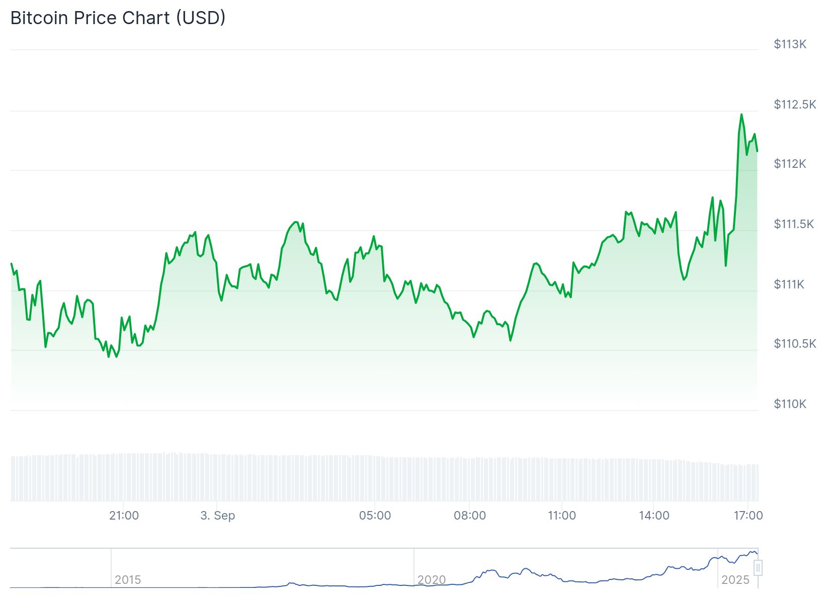 Bitcoin (BTC) a fortement augmenté cet après-midi et se trouve maintenant au-dessus du seuil important de 112 000 dollars. Selon les analystes, c’est un niveau déterminant pour la direction du marché. Le cours a reçu un nouvel élan après des chiffres décevants du marché du travail aux États-Unis et les déclarations d’un responsable de la banque centrale américaine.