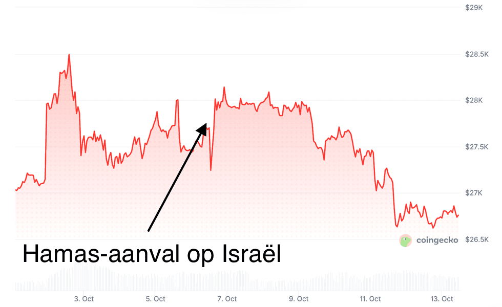 Des conflits plus récents montrent le même schéma. Après l’attaque du Hamas sur Israël le 7 octobre 2023, Bitcoin est passé d’environ 28 000 dollars à environ 26 500 dollars, soit une baisse d’environ cinq pour cent. Le cours s’est rétabli complètement en quelques jours.