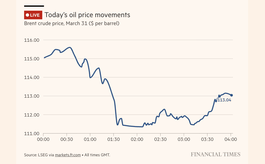 Le prix du pétrole a de nouveau augmenté mardi après qu’un pétrolier koweïtien a été touché par un drone dans les eaux de Dubaï. Le Brent a brièvement dépassé les 115 dollars le baril lors des premières transactions avant de redescendre à environ 113 dollars. L’incendie sur le navire a été maîtrisé, mais l’attaque souligne une fois de plus la vulnérabilité de l’approvisionnement énergétique de la région.