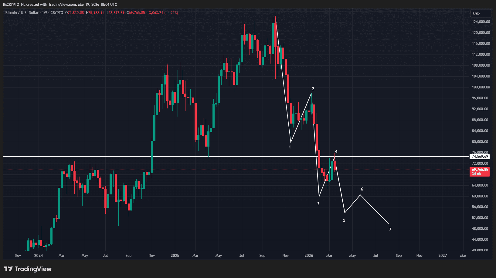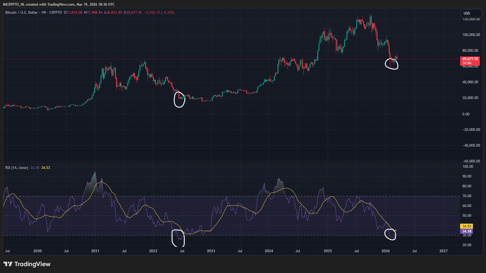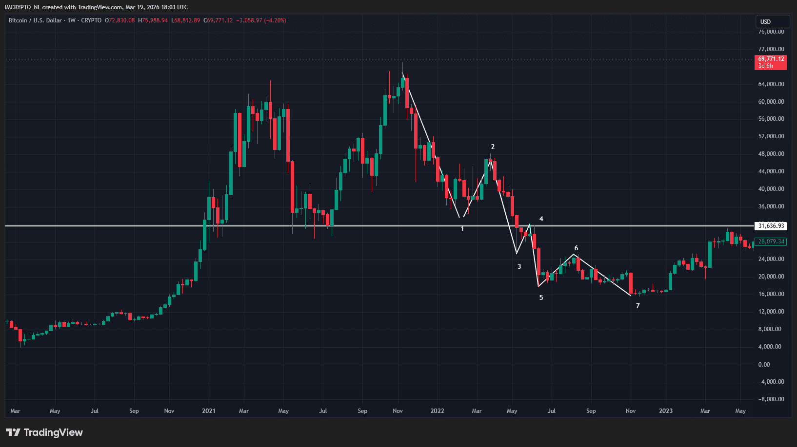 Le 6 octobre, Bitcoin a atteint son plus haut niveau à plus de 126 000. Nous sommes maintenant plus de cinq mois plus tard, et on peut dire que le cours a connu un parcours tumultueux. Si l’on relie les points, on pourrait conclure qu’il se trouve dans une position similaire à celle de début juin 2022.