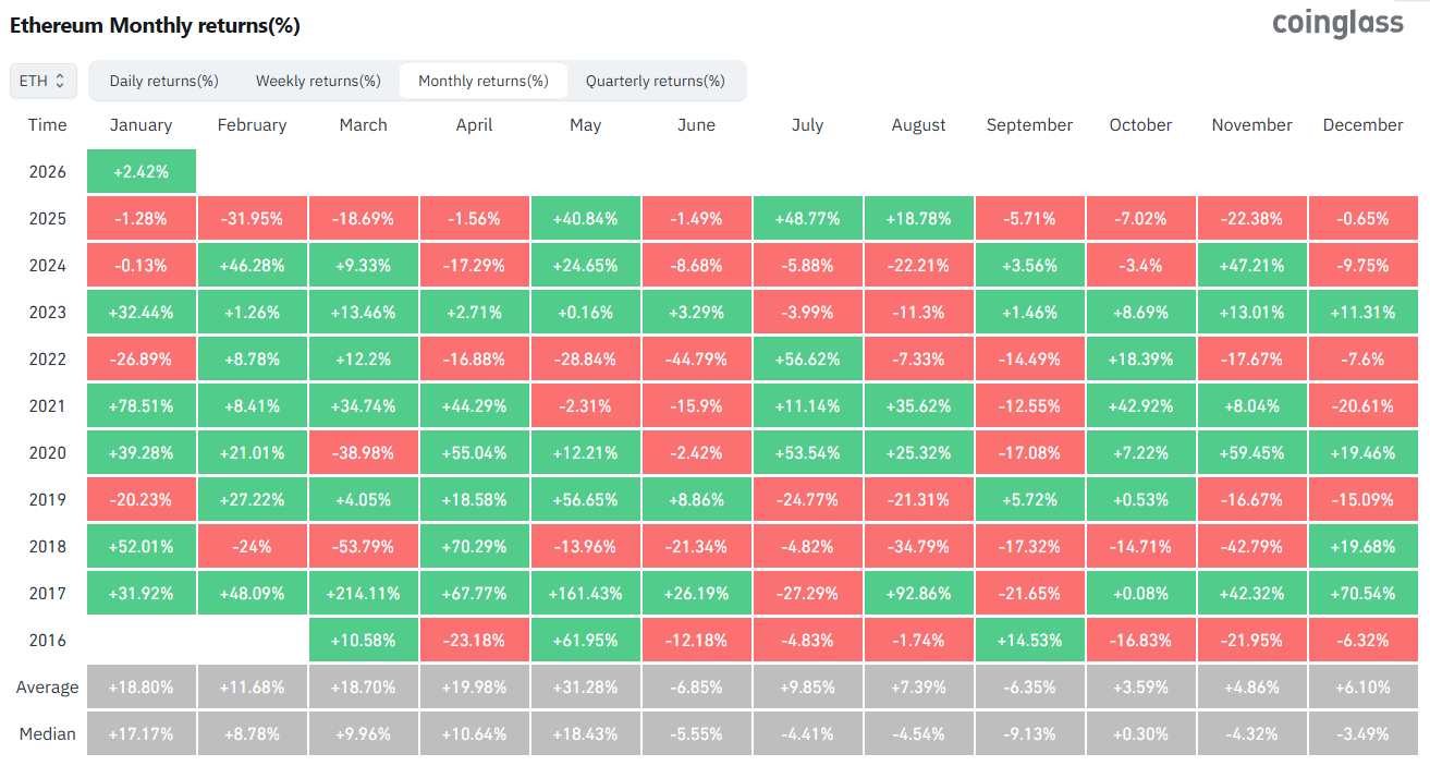 L’année 2025 vient à peine de se terminer, mais les analystes dressent déjà le bilan pour Ethereum (ETH). En examinant les résultats mensuels, on constate que ce n’était pas une année forte pour la plus grande altcoin.