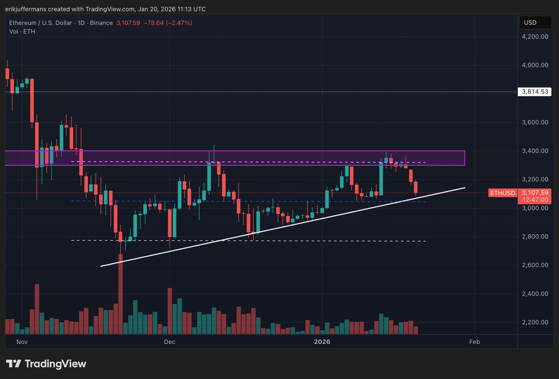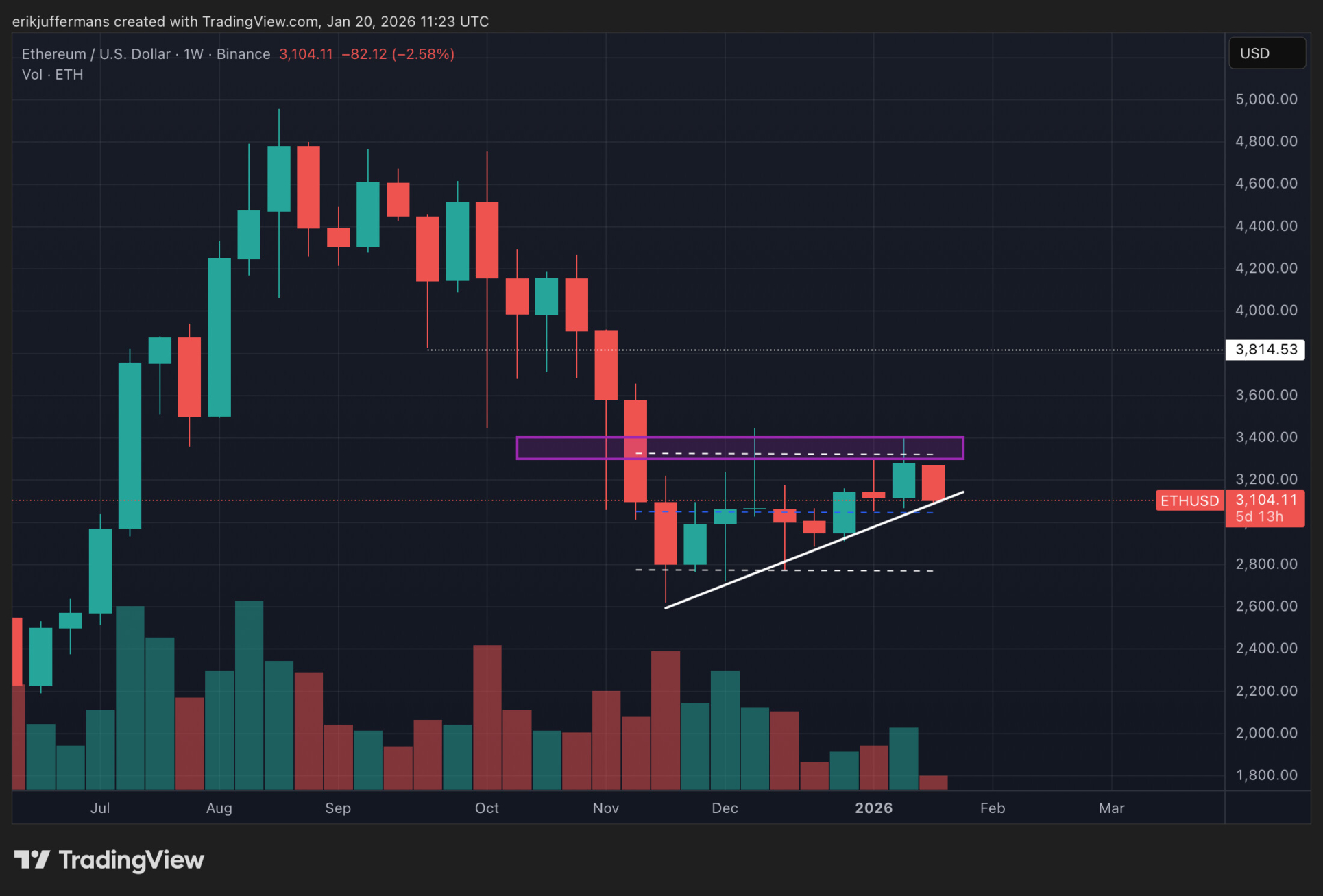 Tant que la direction du cours n’est pas définie, il convient de rester objectif. Il est cependant clair que l’espace de mouvement de l’ETH se réduit progressivement.