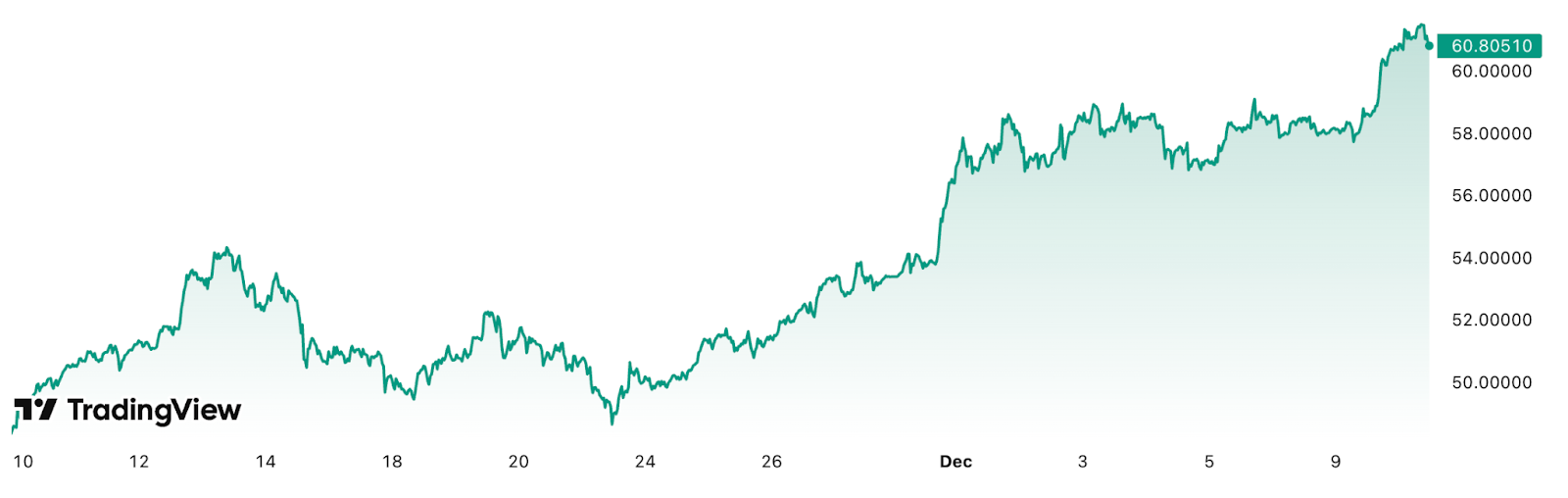 Son grand frère, l’or, a également connu de solides performances dernièrement. En octobre, le métal précieux a atteint un pic de plus de 4 381 dollars l’once, suivi d’une brève baisse sous les 3 900 dollars, avant de remonter autour de 4 200 dollars.