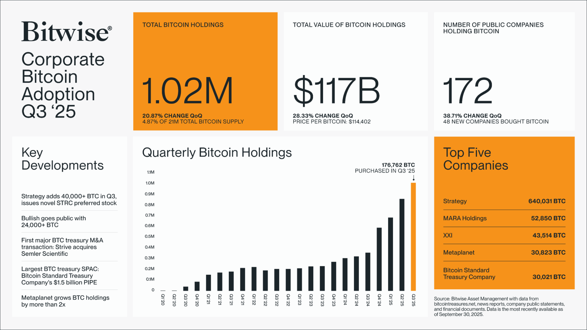 Un rapport de la société d’investissement Bitwise a indiqué qu’au troisième trimestre de cette année, 48 nouvelles entreprises ont ajouté du Bitcoin à leur bilan. Mais selon Sandro Gonzalez du projet Cardano KWARXS, ce n’est qu’un début.