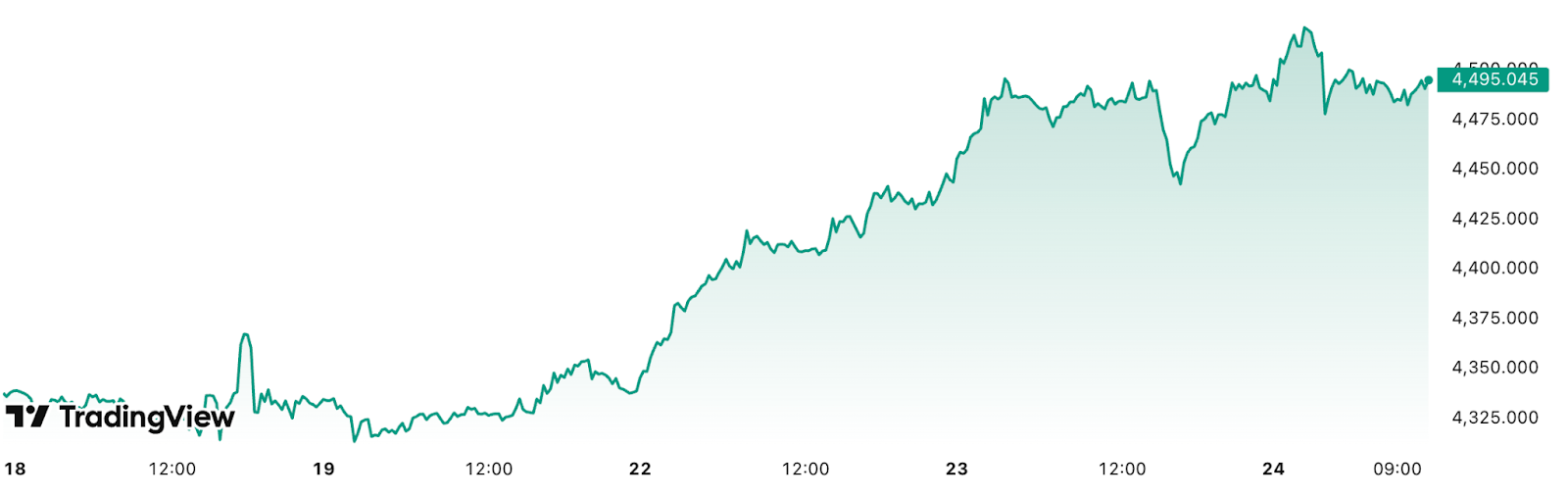 Le prix de l’or a atteint aujourd’hui un nouveau record, dépassant désormais les 4 521 dollars par once. Depuis le début de l’année, le métal précieux a augmenté de plus de soixante et onze pour cent. Cette hausse impressionnante est principalement due aux achats massifs par les banques centrales.