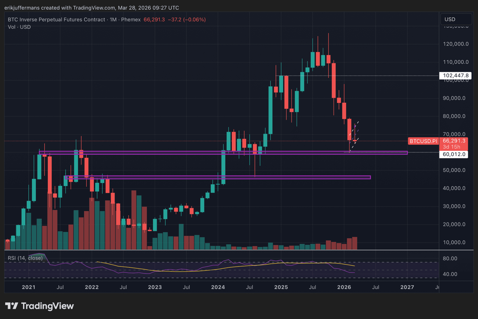 Sur le graphique mensuel, Juffermans identifie deux zones de support importantes.