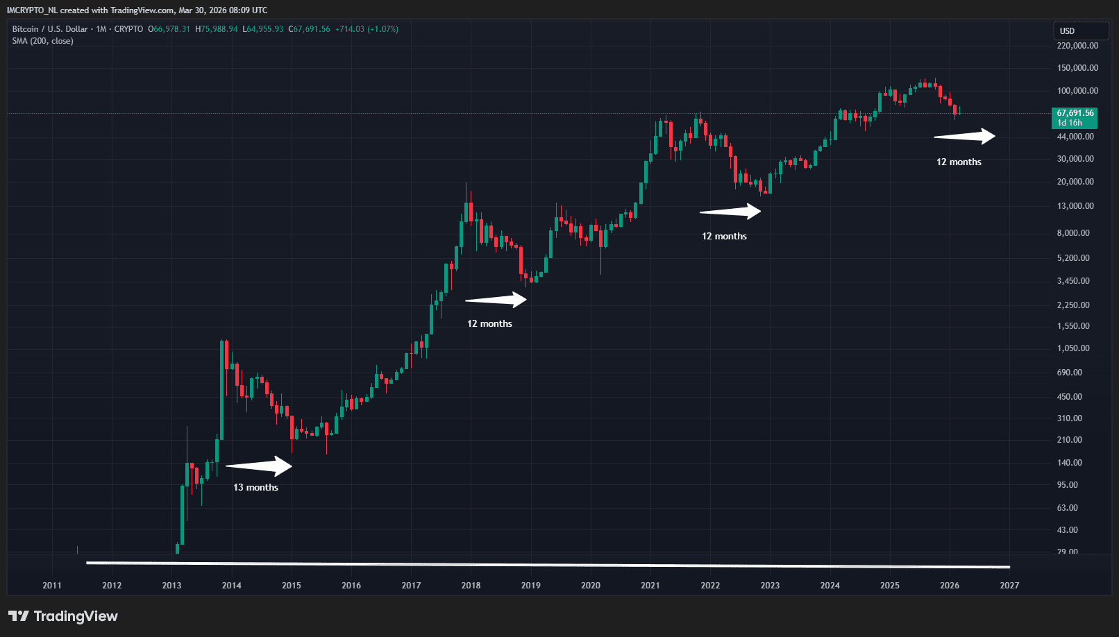 Lors des cycles précédents, Bitcoin a atteint son point bas trois à quatre mois plus tard. Si l’histoire se répète, la situation pourrait se stabiliser d’ici la fin de l’été.