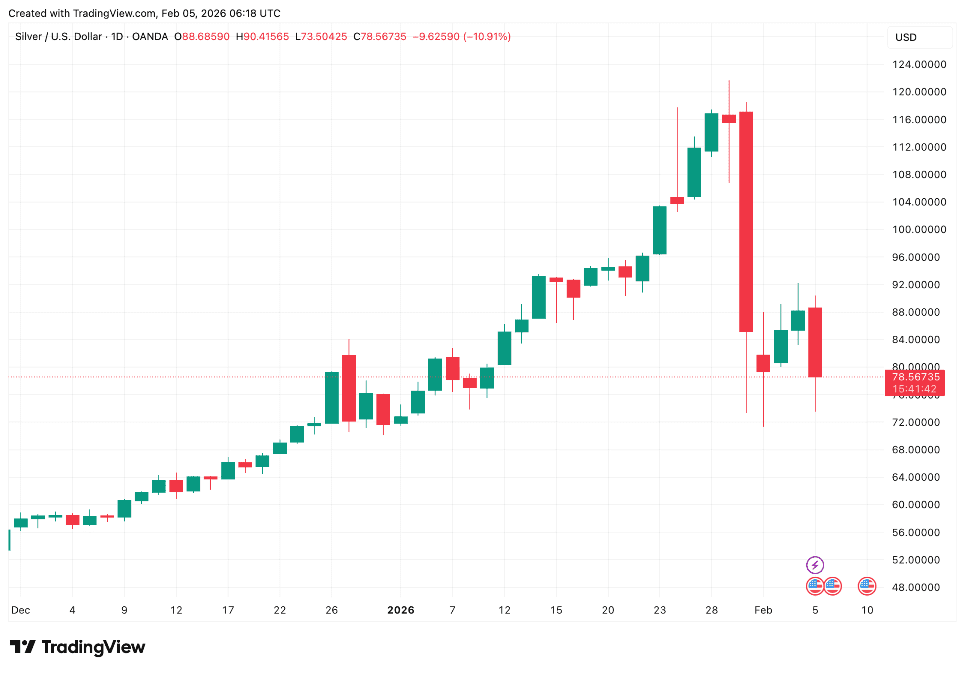 Après une montée de plusieurs semaines vers des sommets records, le sentiment sur le marché des métaux précieux a brutalement changé. Le prix de l’argent est désormais inférieur de plus de trente pour cent à son niveau de fin janvier. Le prix de l’or a également reculé de plus de trois pour cent dans un marché agité.