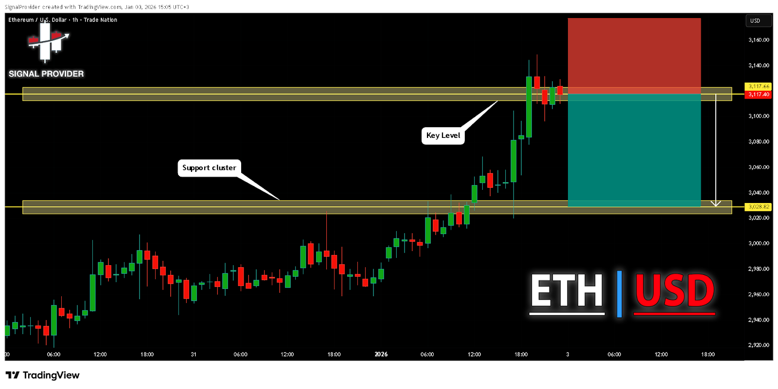 Le cours évolue près d’une résistance clé à 3 117 dollars, écrit-il sur TradingView. Un repli vers la zone des 3 000 dollars semble probable, un niveau qui pourrait servir de premier support.
