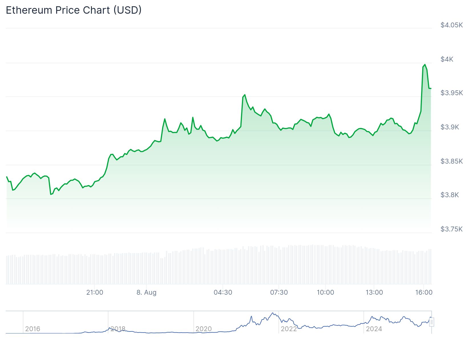 Ethereum (ETH) connaît depuis un certain temps une hausse historique de son cours et vient de la couronner en franchissant les 4 000 dollars. Depuis décembre dernier, la plus grande altcoin n’avait pas atteint une telle valeur. Mais ce qui est encore plus important : si le cours parvient à poursuivre sur sa lancée, il pourrait filer vers de nouveaux records.