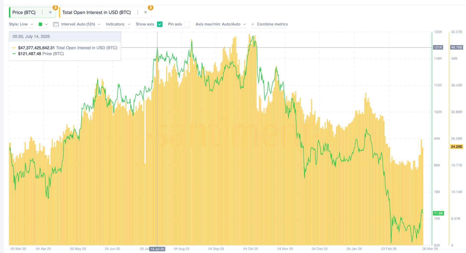 L’open interest, soit le montant total des contrats à terme en cours, s’élève actuellement à environ 24,3 milliards de dollars. C’est moins de la moitié des 47 milliards atteints lors du rallye de 2025.