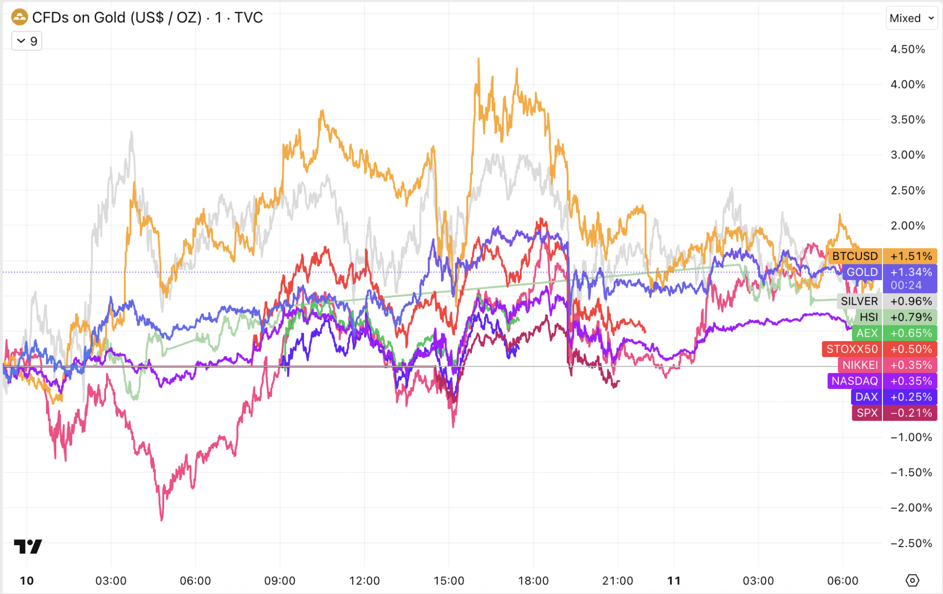 Pour l’instant, les contrats à terme sur les principaux indices boursiers affichent de légères hausses, tandis que le cours du Bitcoin a enregistré un léger recul.