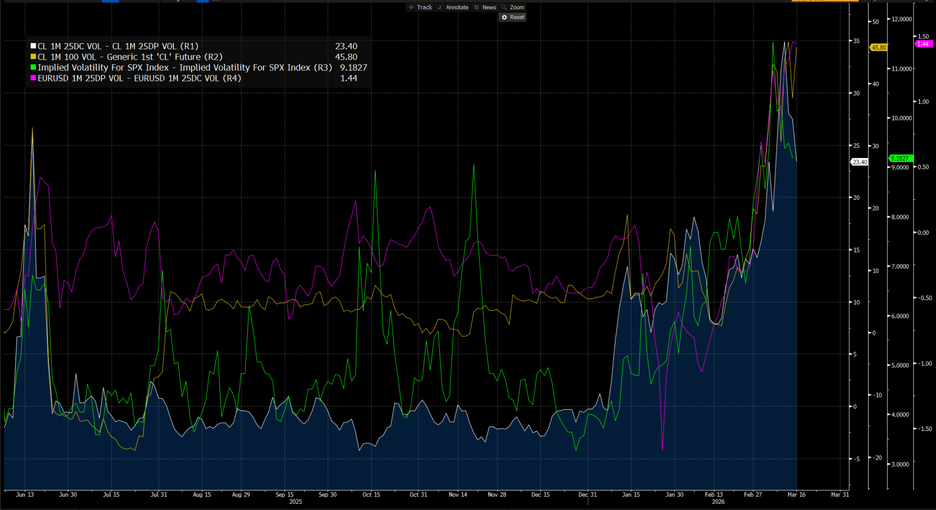 Actuellement, nous sommes dans une situation où les marchés sont tous positionnés de manière unilatérale en raison de la guerre en Iran.