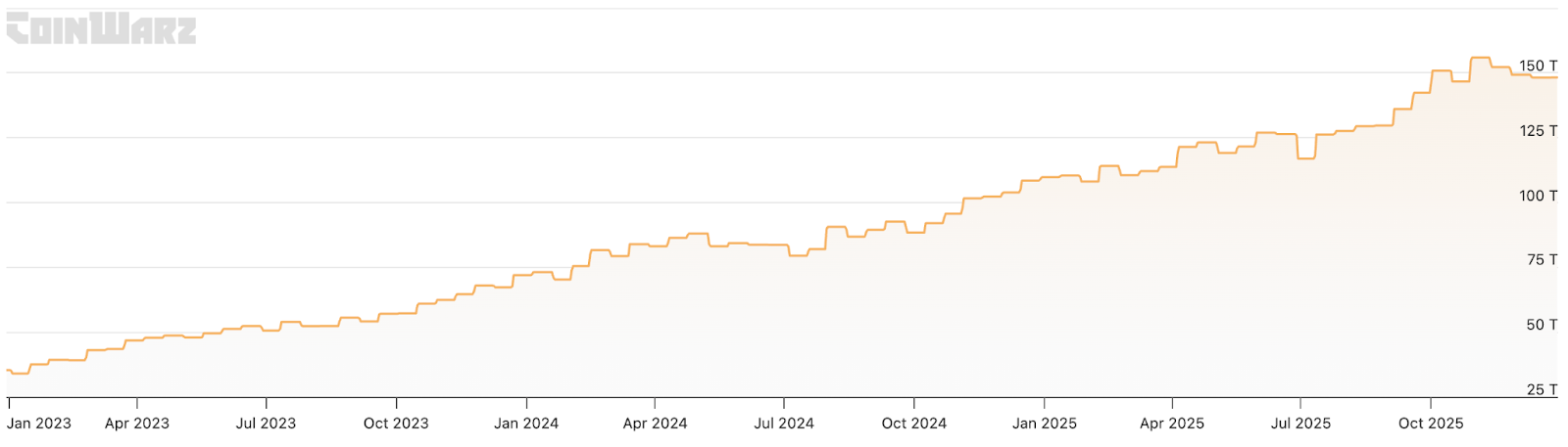 Actuellement, le BTC se négocie autour de 87 500 dollars. La difficulté a également légèrement baissé, à 148,26 trillions. Le prochain ajustement est prévu pour le 8 janvier 2026, où la valeur pourrait atteindre 149 trillions.
