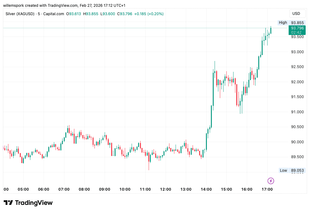 Tandis que l’or se consolide, l’argent affiche une dynamique bien plus vigoureuse. Le prix de l’argent a augmenté de près de 6 % pour atteindre 93 dollars, surpassant nettement l’or.
