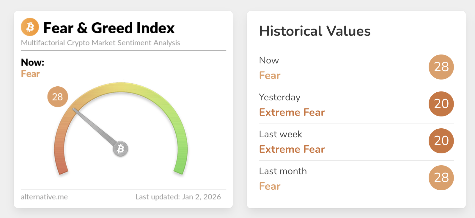 Une longue période de peur est perçue par certains investisseurs comme une opportunité, offrant un bon ratio risque/rendement. L’entrepreneur crypto Brian Rose a déclaré fin décembre que le sentiment est en mode peur depuis huit semaines, plus longtemps que lors du krach d’avril 2025 après l’annonce de nouvelles taxes d’importation américaines.