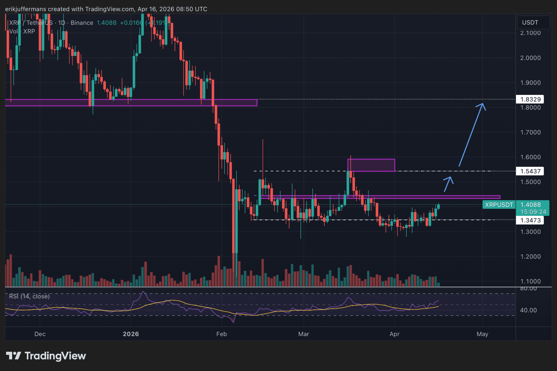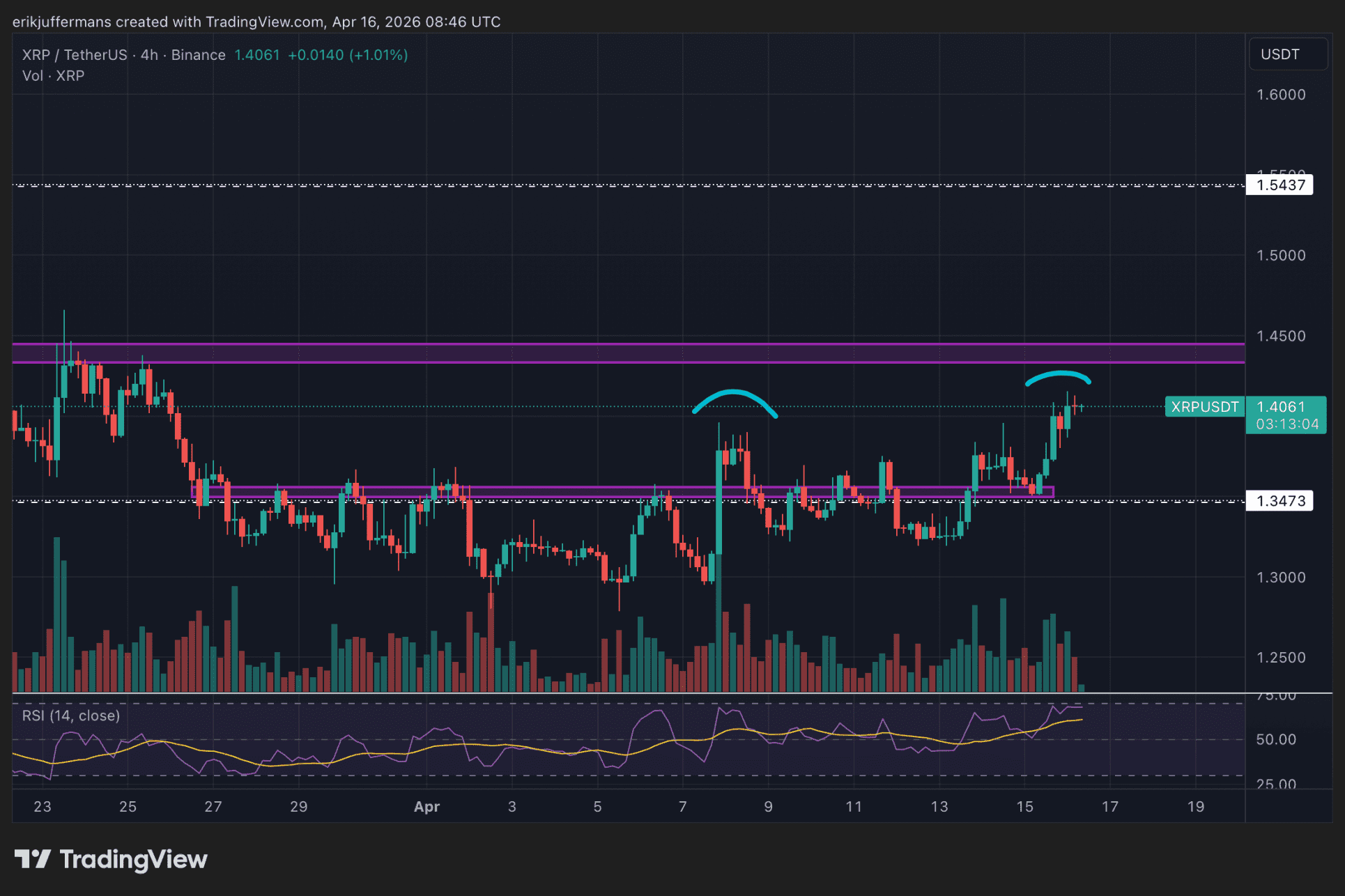 Mais hier, XRP a réalisé une belle performance en dépassant cette zone de résistance, atteignant 1,40 dollar.