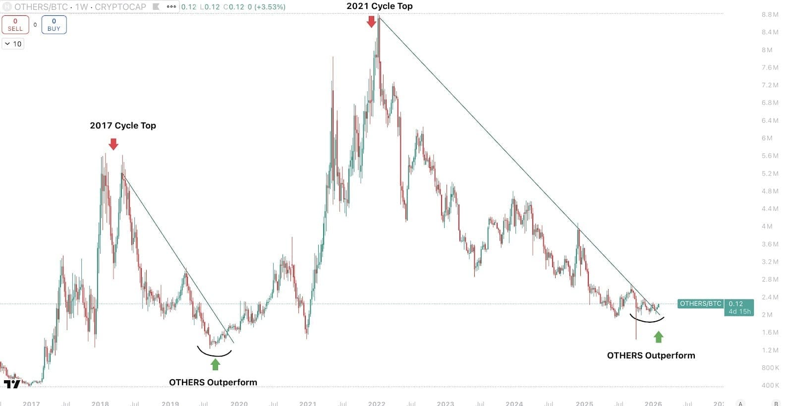 Il faut également nuancer cette percée. Il est irréaliste d’attendre que le graphique OTHERS/BTC monte en flèche immédiatement pour atteindre les anciens sommets.