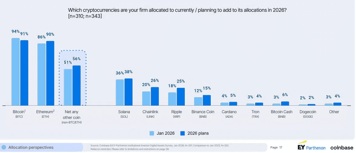 Alors que Bitcoin (BTC) était auparavant au centre des attentions, les investisseurs adoptent désormais une approche plus large. Selon le rapport, un quart des participants envisagent d’ajouter XRP à leur portefeuille en 2026.