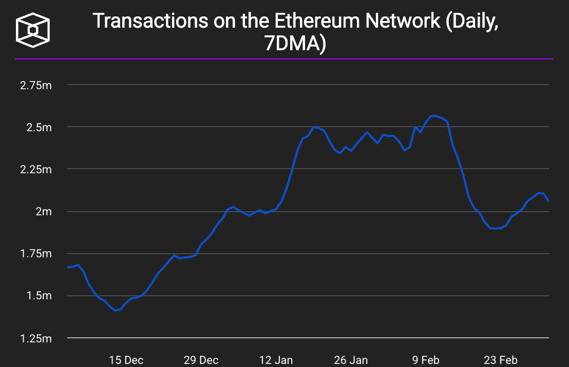 Au sein du réseau lui-même, des signes de ralentissement apparaissent. Après un pic fin janvier, l’activité a diminué de plus de vingt pour cent, selon les données de The Block.