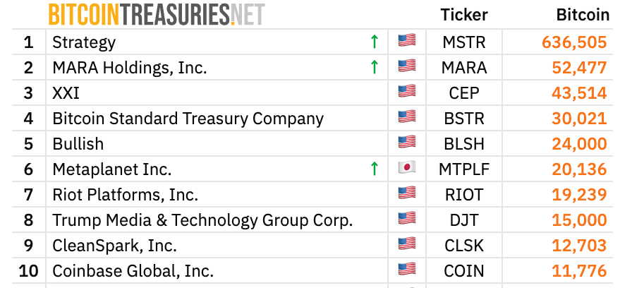 Cela fait de l’entreprise non seulement le plus grand détenteur public de BTC au Japon, mais aussi un poids lourd mondial. Metaplanet est désormais à la sixième place des plus grands détenteurs de Bitcoin cotés en bourse. Seules des entités comme Bullish et Strategy sont encore plus grandes.