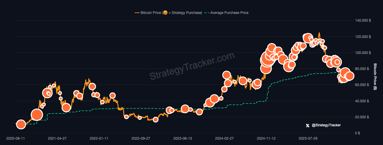 Avec cette acquisition, le total atteint 780 897 BTC. Pour cette position massive, l’entreprise a payé plus de 59 milliards de dollars au total, avec un prix d’achat moyen d’environ 75 500 dollars par Bitcoin.