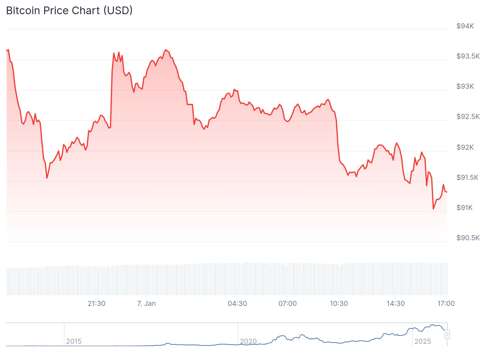 Bitcoin a déjà complètement effacé son puissant rebond d’hier soir. Au début de la nuit, le cours flirtait à nouveau avec le seuil des 94 000 dollars, mais il se situe désormais juste au-dessus des 91 000 dollars.