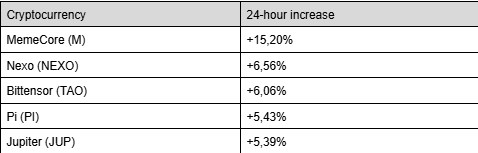 Voici les plus fortes hausses du top 100 des dernières 24 heures :