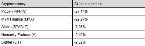 Certaines monnaies ont vécu une journée difficile. Voici les plus fortes baisses du top 100 des dernières 24 heures :
