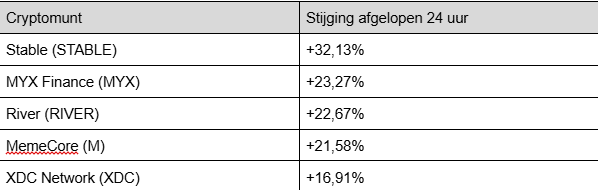 Ce n’est même pas la meilleure performance. Voici les plus grandes hausses du top 100 des dernières 24 heures :