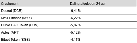 Voici les plus fortes baisses du top 100 des dernières 24 heures :