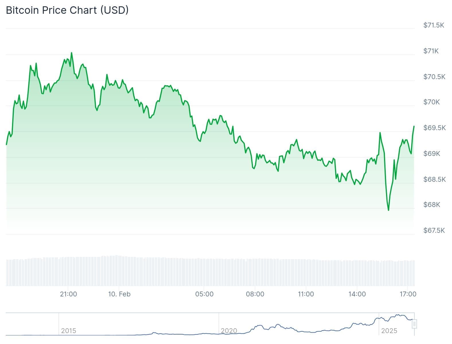 À l’heure de la rédaction, le cours du BTC est à 69 530 dollars, soit une hausse de 0,28 % par rapport à il y a 24 heures. En euros, la plus grande cryptomonnaie s’échange maintenant à 58 390.
