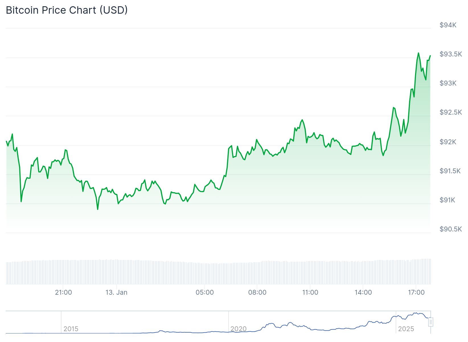Bitcoin a désormais en ligne de mire un nouveau seuil de 94 000 dollars.