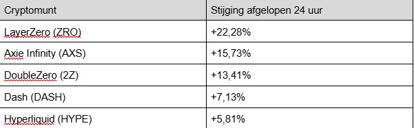 En examinant les performances, on constate plusieurs résultats spectaculaires. Voici les plus fortes hausses du top 100 des dernières 24 heures :