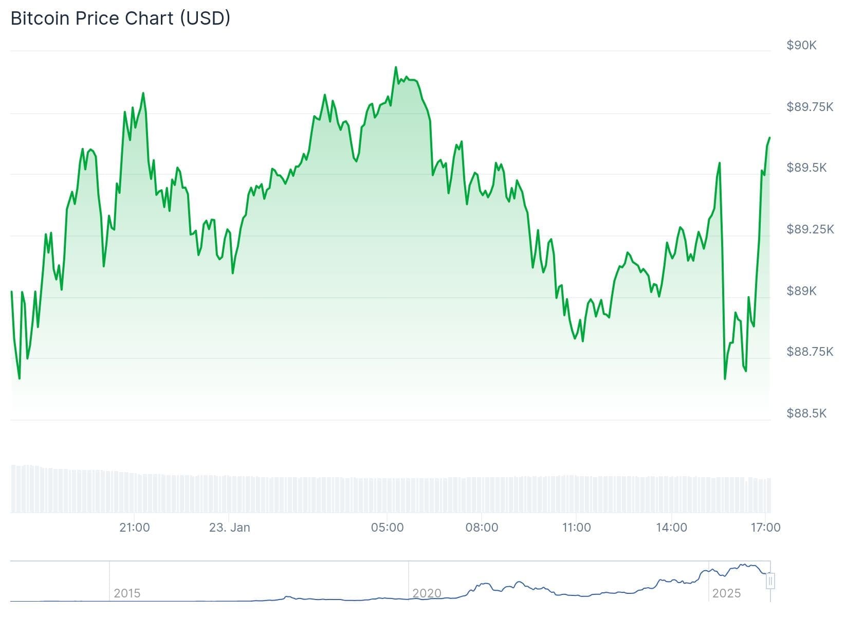 Ensuite, le cours est remonté à 89 600 dollars avant de chuter de 1 000 dollars en seulement dix minutes. Vers 16h30, le Bitcoin n’a eu besoin que d’une petite demi-heure pour remonter à 89 700 dollars.