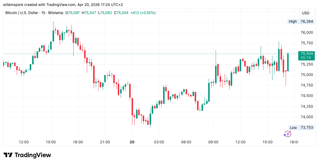 Le marché des cryptomonnaies est majoritairement vert aujourd’hui, bien que moins spectaculairement que la semaine dernière. Le Bitcoin (BTC) a repassé la barre des 75 000 dollars après être retombé vers 74 000 dollars durant le week-end. Les traders se concentrent sur les tensions croissantes autour de l’Iran, un important écart dans le graphique des futures CME, et de nouvelles turbulences dans le secteur de la DeFi.