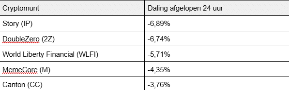 Voici les plus grandes baisses du top 100 des dernières 24 heures :