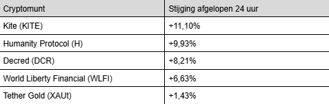 Voici les plus fortes hausses du top 100 au cours des dernières 24 heures :