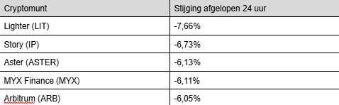 Voici les plus fortes baisses du top 100 au cours des dernières 24 heures :