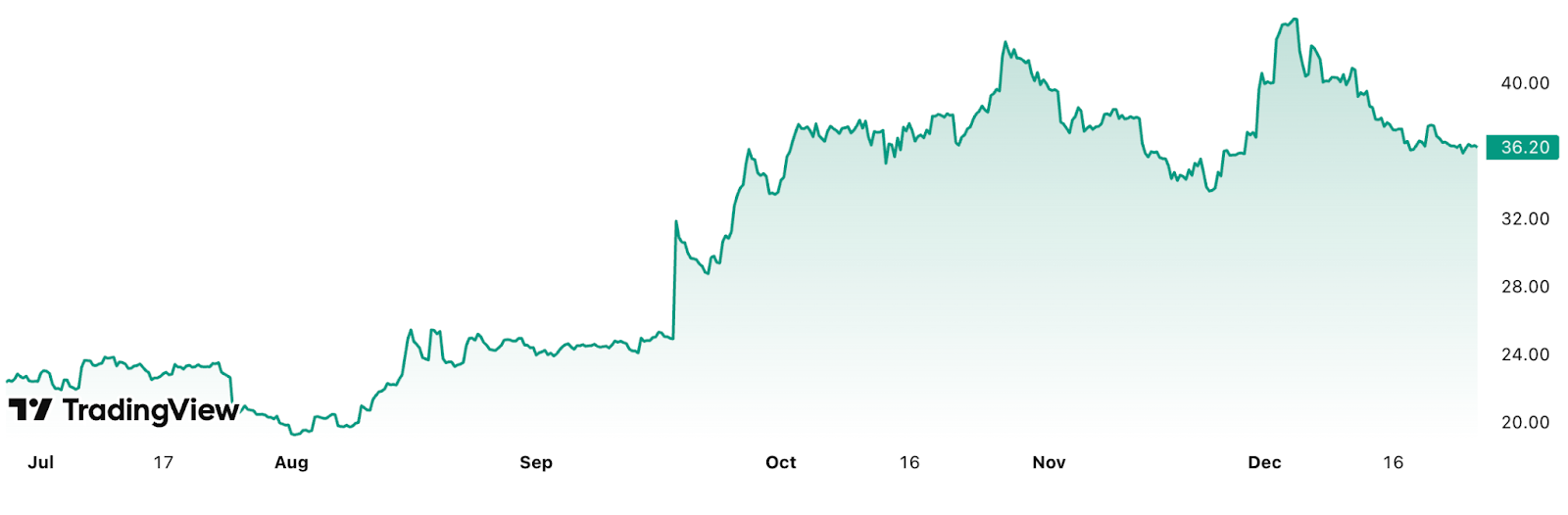 Juste après l’annonce, l’action Intel a bondi de 32 %. Cette hausse s’est poursuivie dans les mois suivants, atteignant un sommet annuel de 44 dollars plus tôt ce mois-ci. Actuellement, l’action est redescendue à 36,20 dollars.