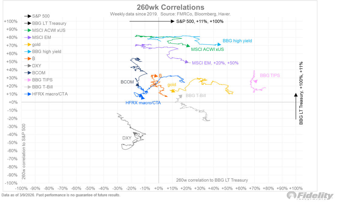 Une analyse récente de Fidelity sur la corrélation entre différentes classes d’actifs révèle que les actifs alternatifs prennent de l’importance. Il s’agit des matières premières, des stratégies de fonds spéculatifs et, de manière notable, du Bitcoin. Ces catégories semblent moins corrélées avec les grands marchés d’actions et d’obligations.