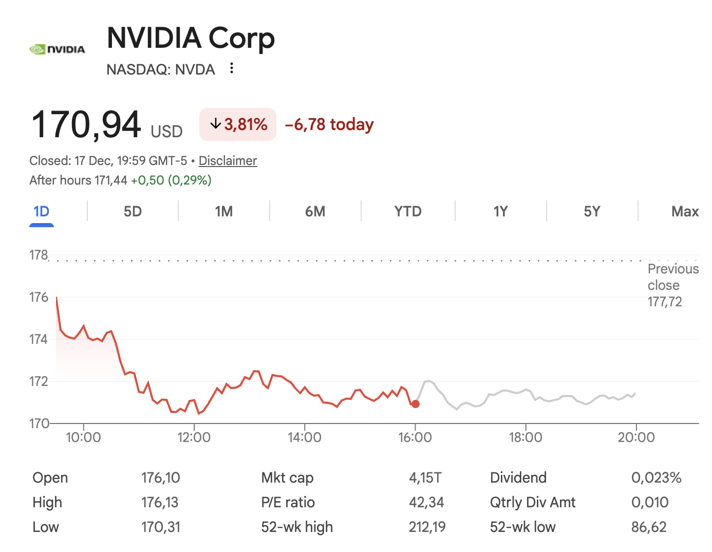 Tandis que le Bitcoin traverse une période de faiblesse, une inquiétude est née concernant l’éclatement de la bulle de l’IA. Hier, Nvidia a chuté de près de 4 %, tandis que le S&P 500 a perdu 1,2 % de sa valeur de marché.