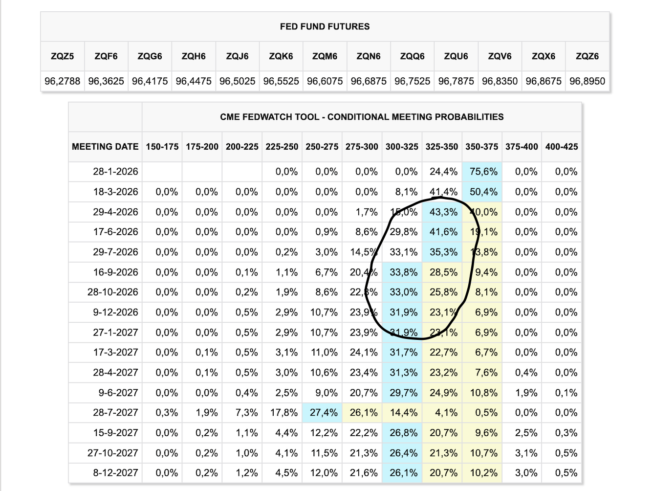 Il semble donc qu’une simple réduction des taux par la banque centrale américaine, assortie de la perspective de plusieurs baisses supplémentaires d’ici 2026, ne soit pas suffisante. C’est du moins la conviction actuelle du marché des futures.