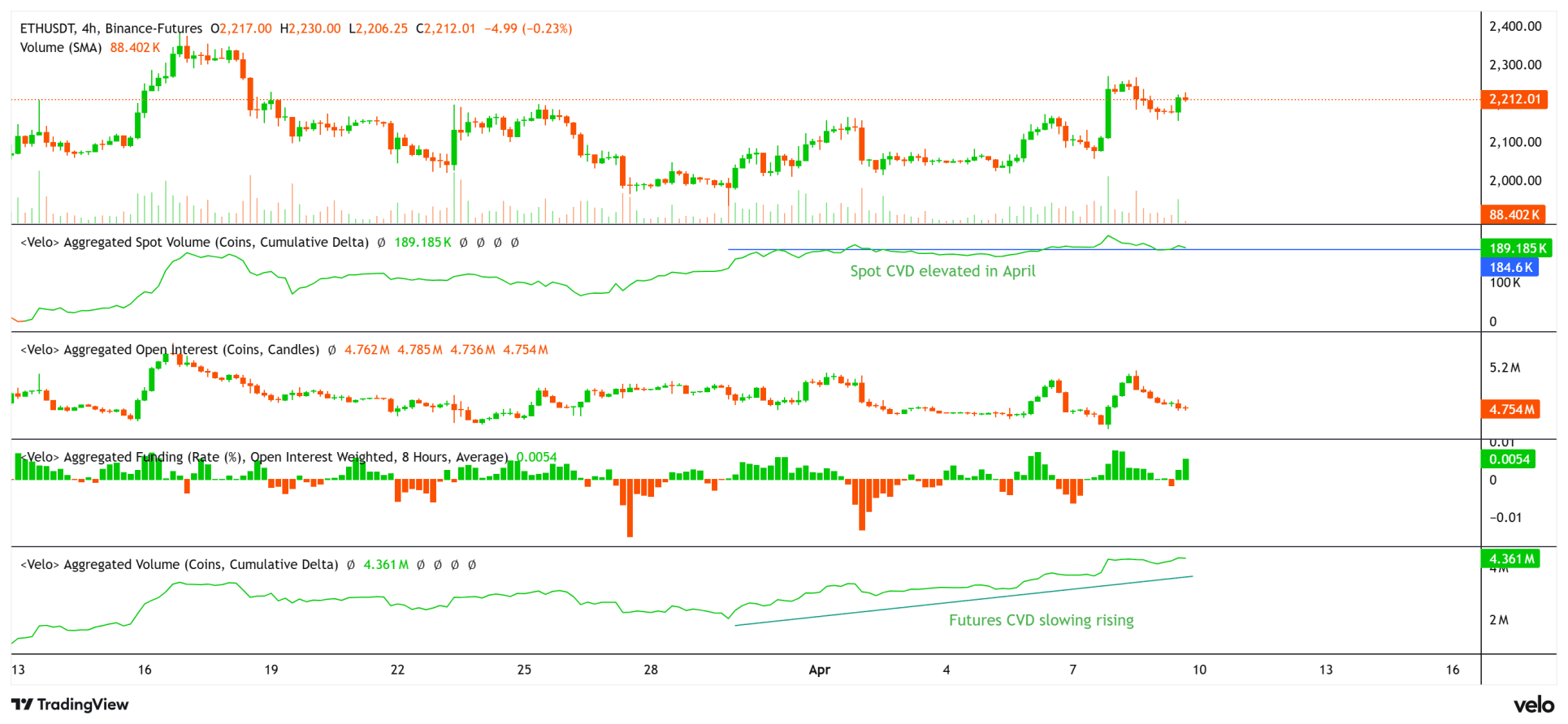 Les données montrent que la demande au comptant est restée solide en avril, tandis que les traders de futures soutiennent le mouvement sans encore le dominer complètement. Le taux de financement est également positif, indiquant un léger biais à l’achat, sans surchauffe immédiate du marché.