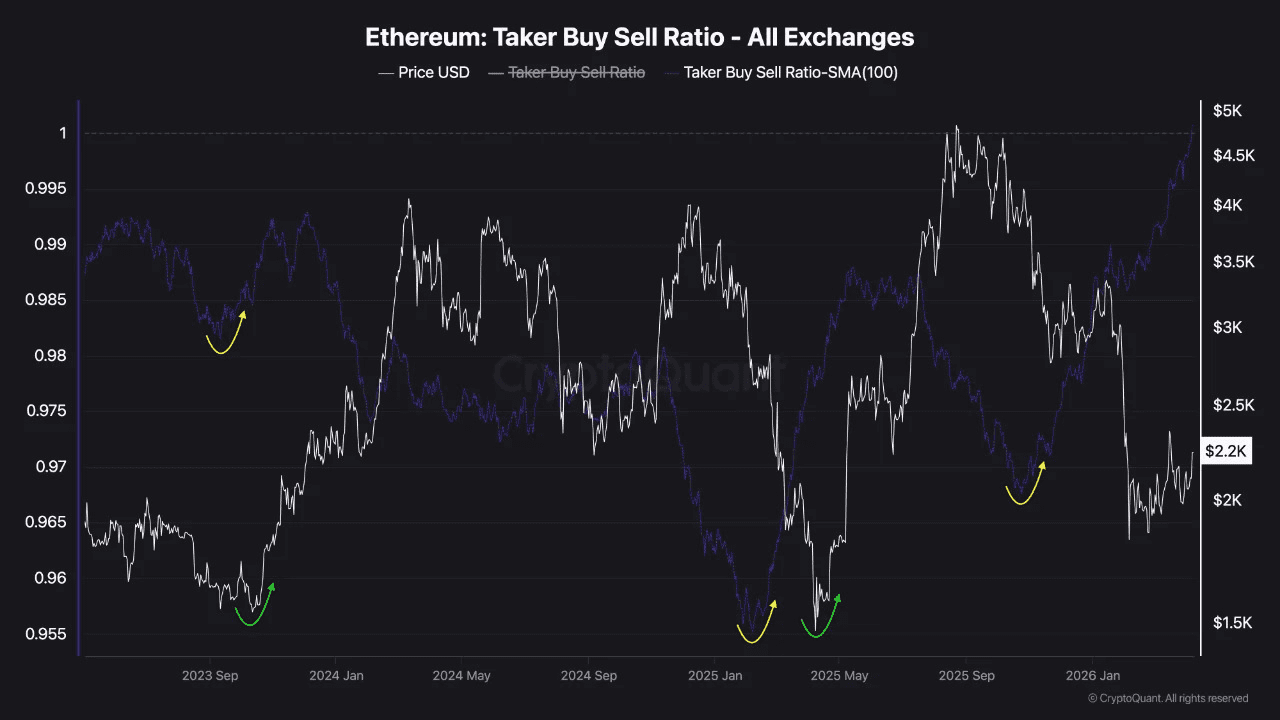 Ethereum montre actuellement plusieurs signes encourageants pour les investisseurs optimistes. Le cours est de nouveau au-dessus de 2 150 dollars, la demande au comptant reste solide et un indicateur macro clé est à un niveau qui, lors de cycles précédents, a souvent coïncidé avec des creux de marché.