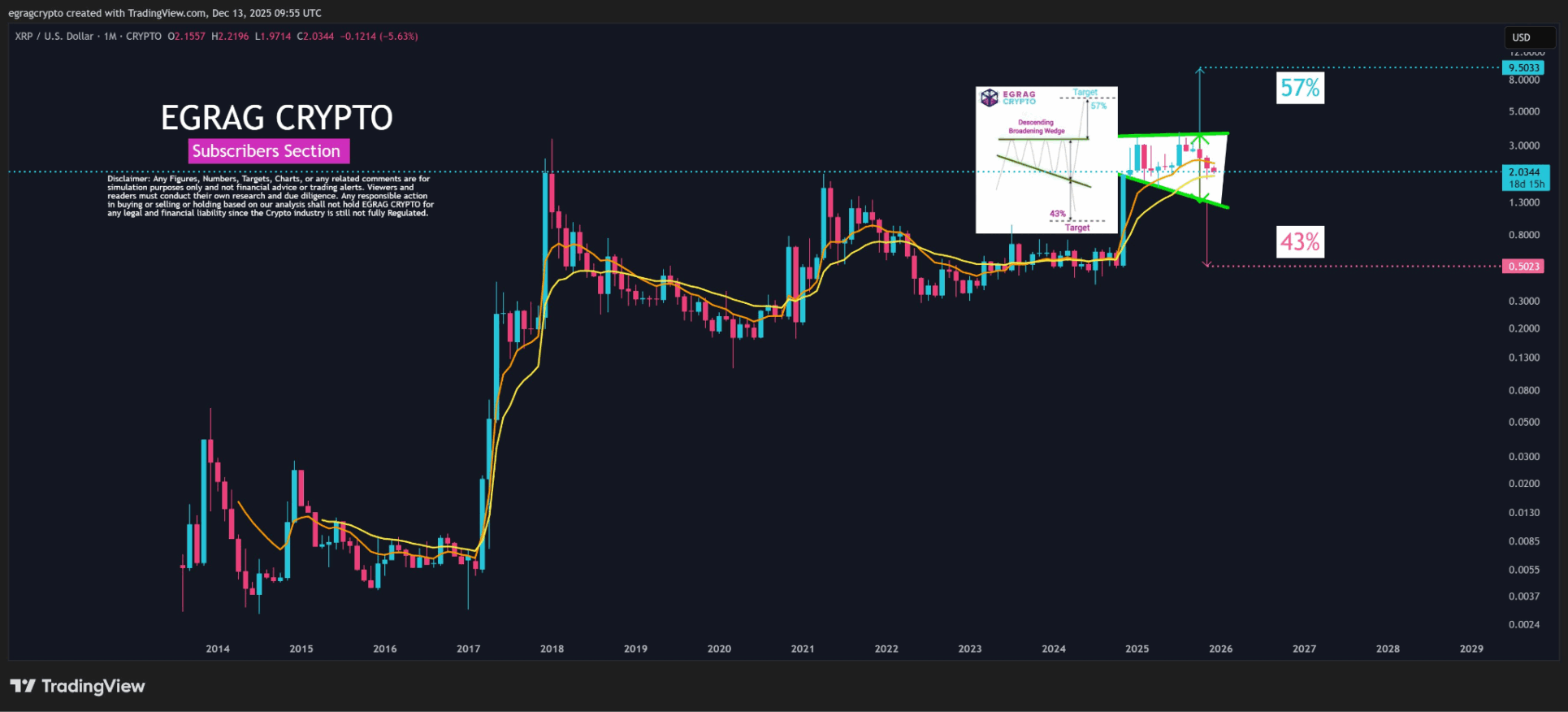 EGRAG souligne que, dans le passé, XRP a souvent évolué latéralement pendant plusieurs mois avant de retrouver une dynamique haussière. Tant que le cours ne clôture pas durablement sous 1,80 à 1,60 dollar, il estime qu’un rebond reste plausible.
