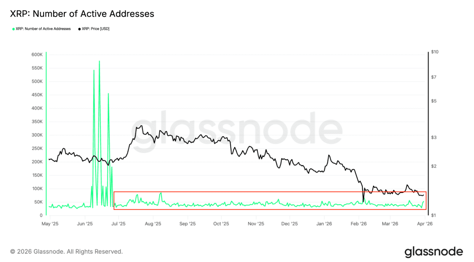 En plus des signaux techniques, les données on-chain montrent également une tendance à l’affaiblissement. Le nombre d’adresses actives quotidiennes sur le XRP Ledger a fortement diminué depuis juillet 2025, se situant actuellement autour de 50 000.